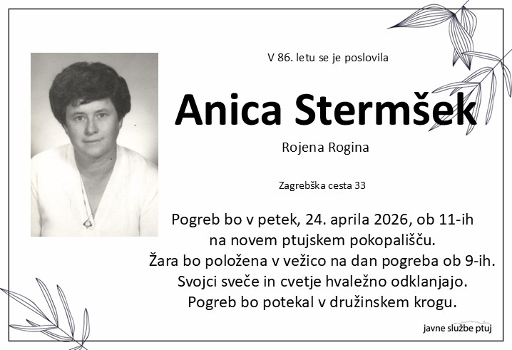Pogreb bo v petek, 24. aprila 2026, ob 11-ih na novem ptujskem pokopališču.