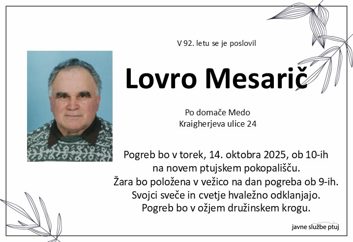 Pogreb bo v torek, 14. oktobra 2025, ob 10-ih na novem ptujskem pokopališču.