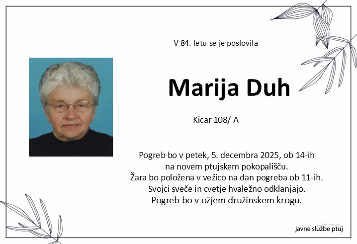 Pogreb bo v petek, 5. decembra 2025, ob 14-ih na novem ptujskem pokopališču.