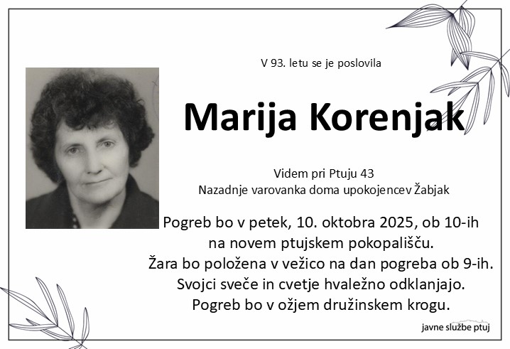 Pogreb bo v petek, 10. oktobra 2025, ob 10-ih na novem ptujskem pokopališču.