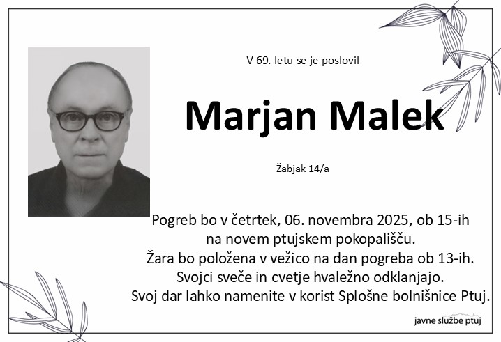 Pogreb bo v četrtek, 06. novembra 2025, ob 15-ih na novem ptujskem pokopališču.