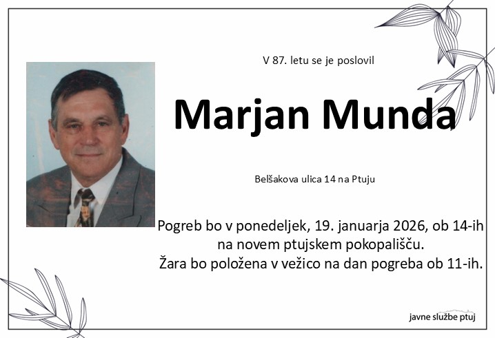 Pogreb bo v ponedeljek, 19. januarja 2026, ob 14-ih na novem ptujskem pokopališču.