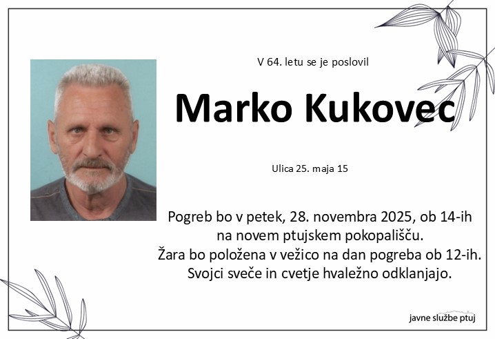 Pogreb bo v petek,28.novembra 2025 ob 14-ih na novem ptujskem pokopališču.