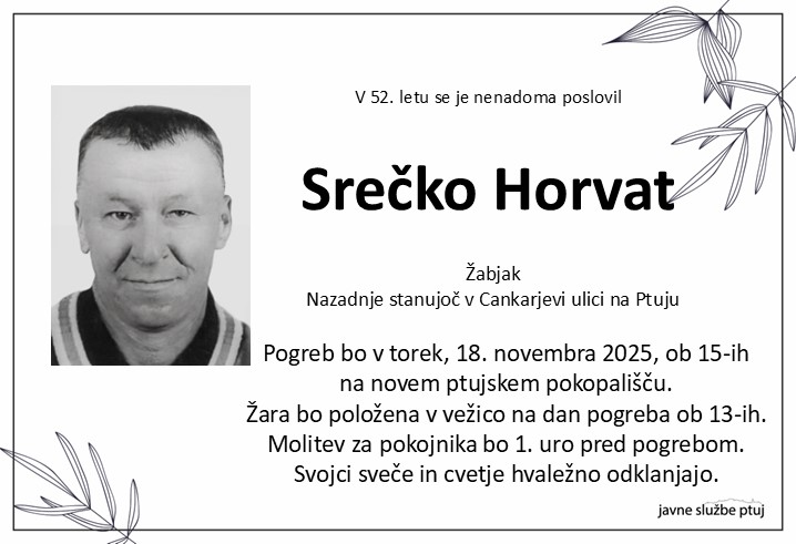 Pogreb bo v torek, 18. novembra 2025, ob 15-ih na novem ptujskem pokopališču.